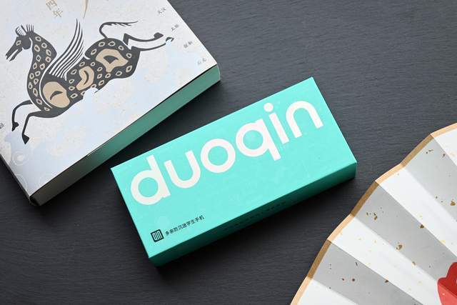 包装依旧是简洁的薄荷绿盒身,搭配以醒目烫银的“duoqin”LOGO。用过它家手机的朋友会有种油然而生的熟悉感。