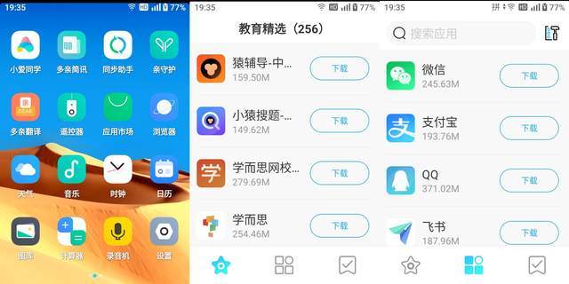 初次启动,手机会有版本提示,如果是学生,可以直接选择学生版本,这样除自带商店的APP可下载外,孩子是无法通过第三方来下载、安装APP的。即便是恢复出厂设置重启也不行。而如果是自己入来作备机的话,可以直接选择标准版本,不受任何限制。多亲的手机是经过安卓深度定制的,系统界面很简洁,除了多亲自家的几款实用APP,并无什么应用绑定。它的这个应用商店也多是日常和学习类软件。家长端可以通过亲守护APP来对于限制,乃至禁止。