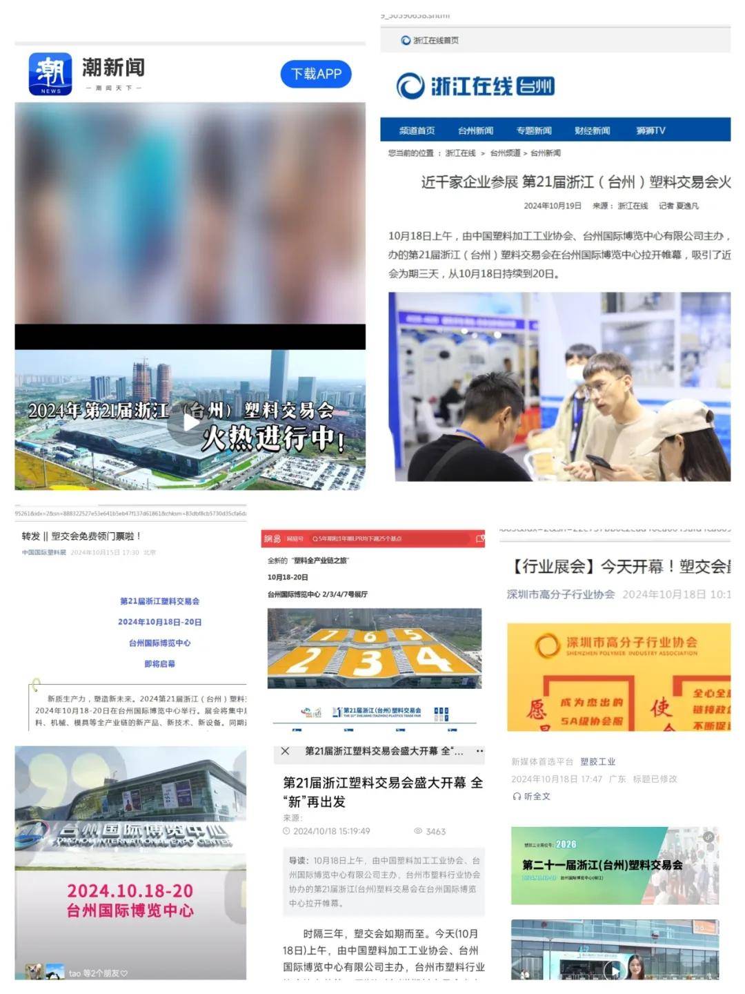 塑交会成功举办,先后被浙江在线、潮新闻等省级媒体以及中国国际塑料展、专塑世界、塑胶工业、网易等近20家行业媒体、商业媒体转载报道。同时,塑交会积累了20余年专业观众、专业买家数据库,累计人群10余万,开展精准推送。工业区、机场、高铁站、各大市场以及今日头条、抖音、腾讯广告等线上线下同步推送,进一步提高展会的曝光率,提升展会的知名度和吸引力,深化“塑交会”品牌影响力。