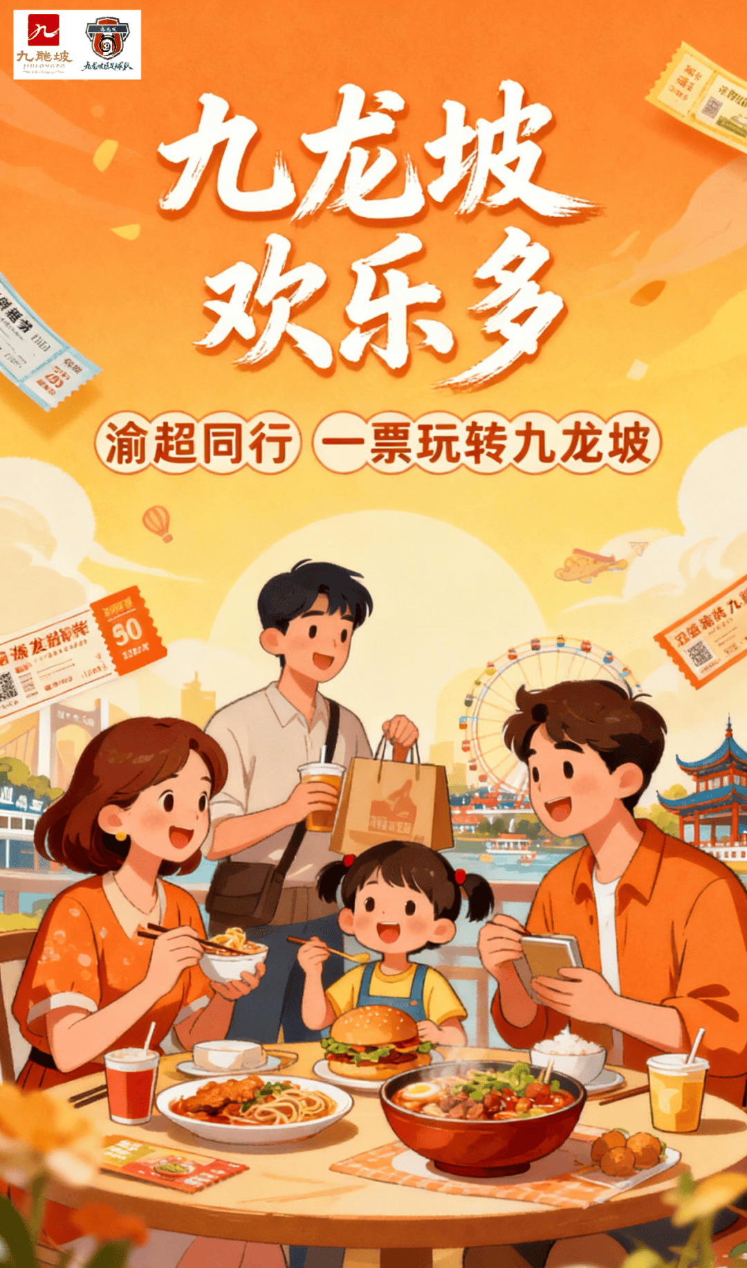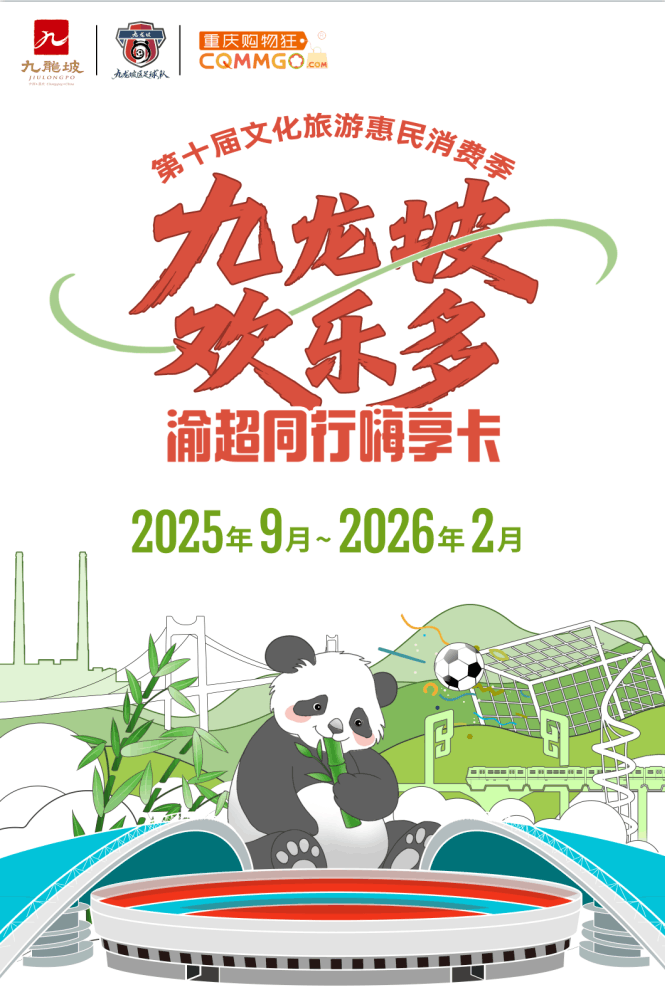 作为“新韵重庆 渝超同行”2025重庆城市足球超级联赛的联动盛宴,九龙坡区第十届文化旅游惠民消费季渝超专场活动正式启动!以赛事为纽带,以惠民为核心,五大特色活动+多元消费福利,横跨2025年11月至2026年4月,让球迷与市民在热血观赛之余,畅享吃、住、购、游、体、娱全场景优惠,点燃九龙消费新热潮!